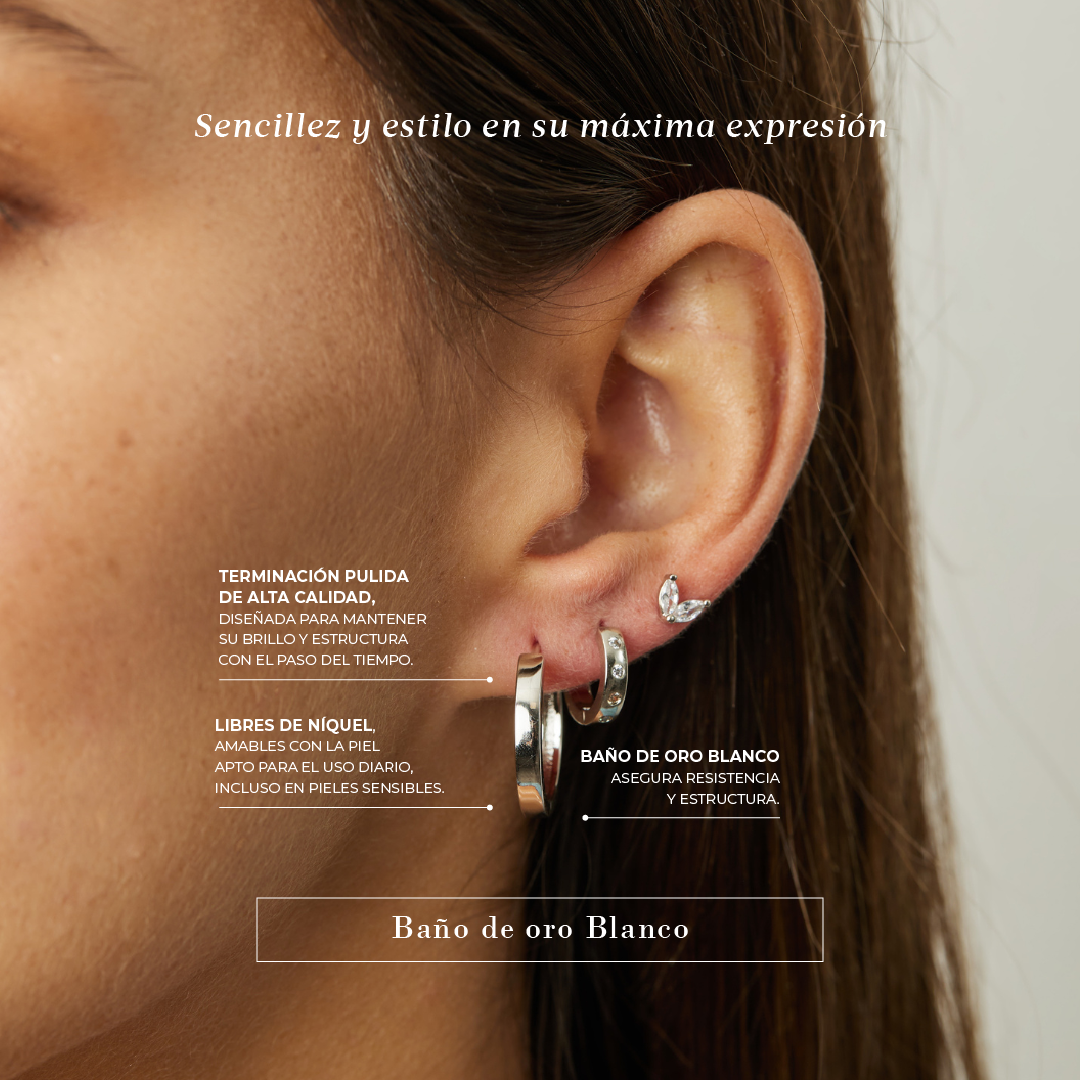 Y para que sigas siendo única, las hicimos en baño de oro blanco - que es muy resistente