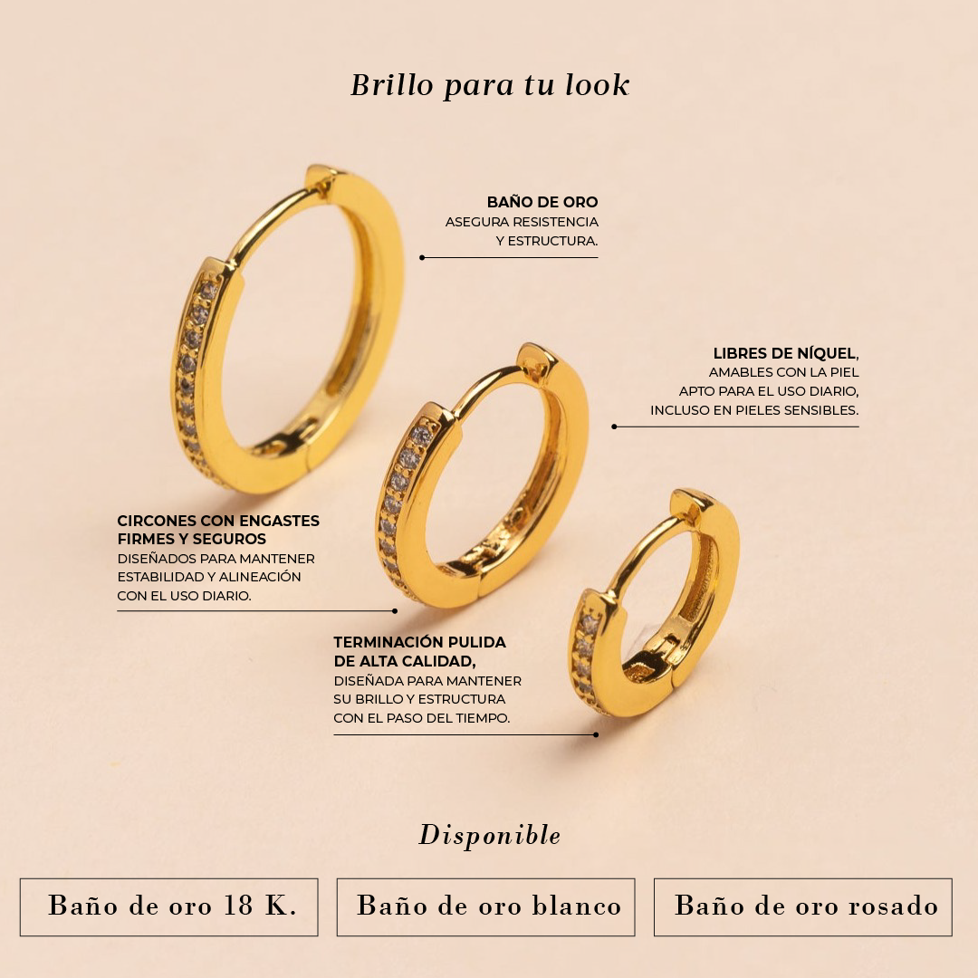 Y para que sigas siendo única, las hicimos en baño de oro blanco- que es muy resistente, y circones para que brillen con más fuerza