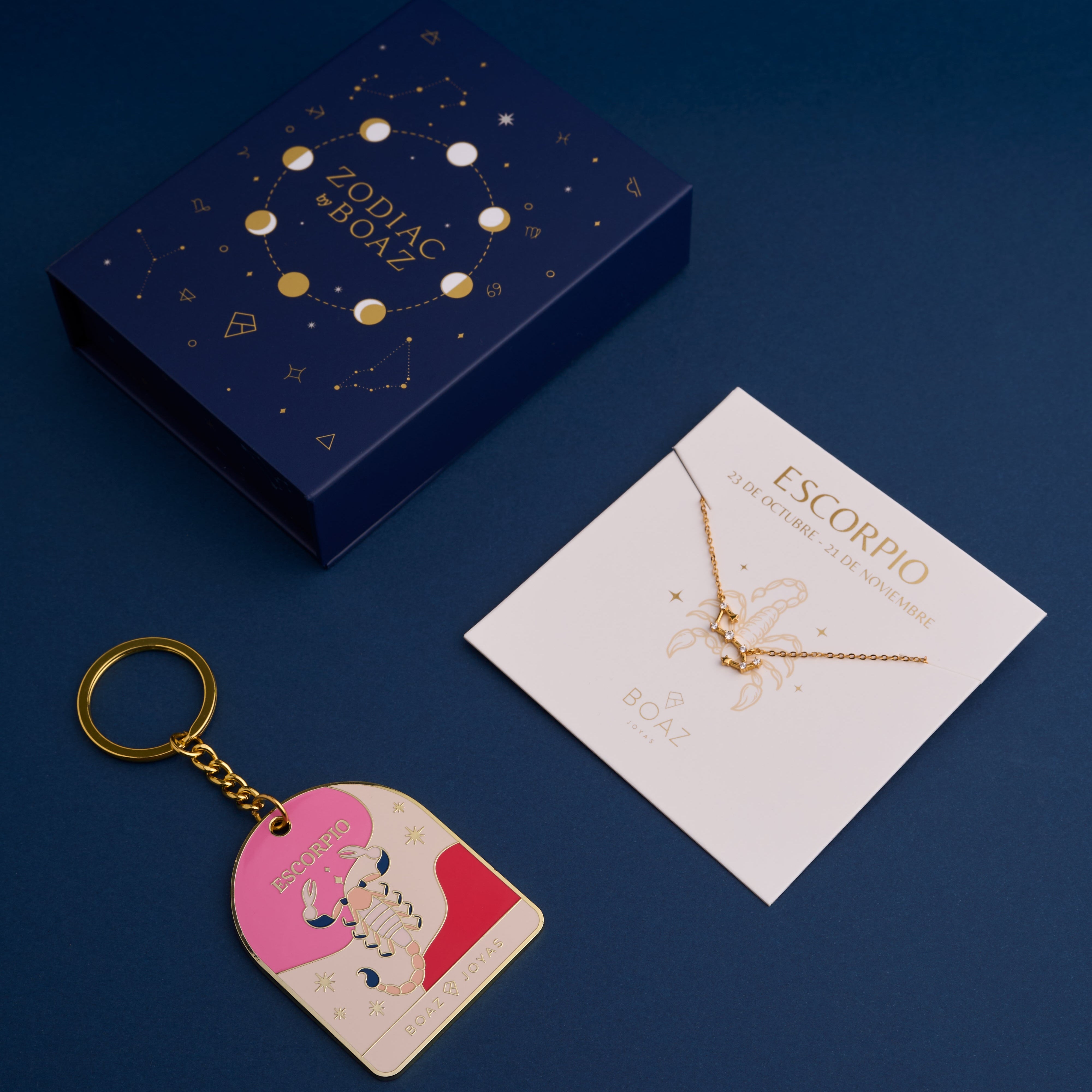 Agrega tu collar o pulsera Escorpio (constelación o signo del zodiaco) + este llavero al carrito y se descontará automáticamente.