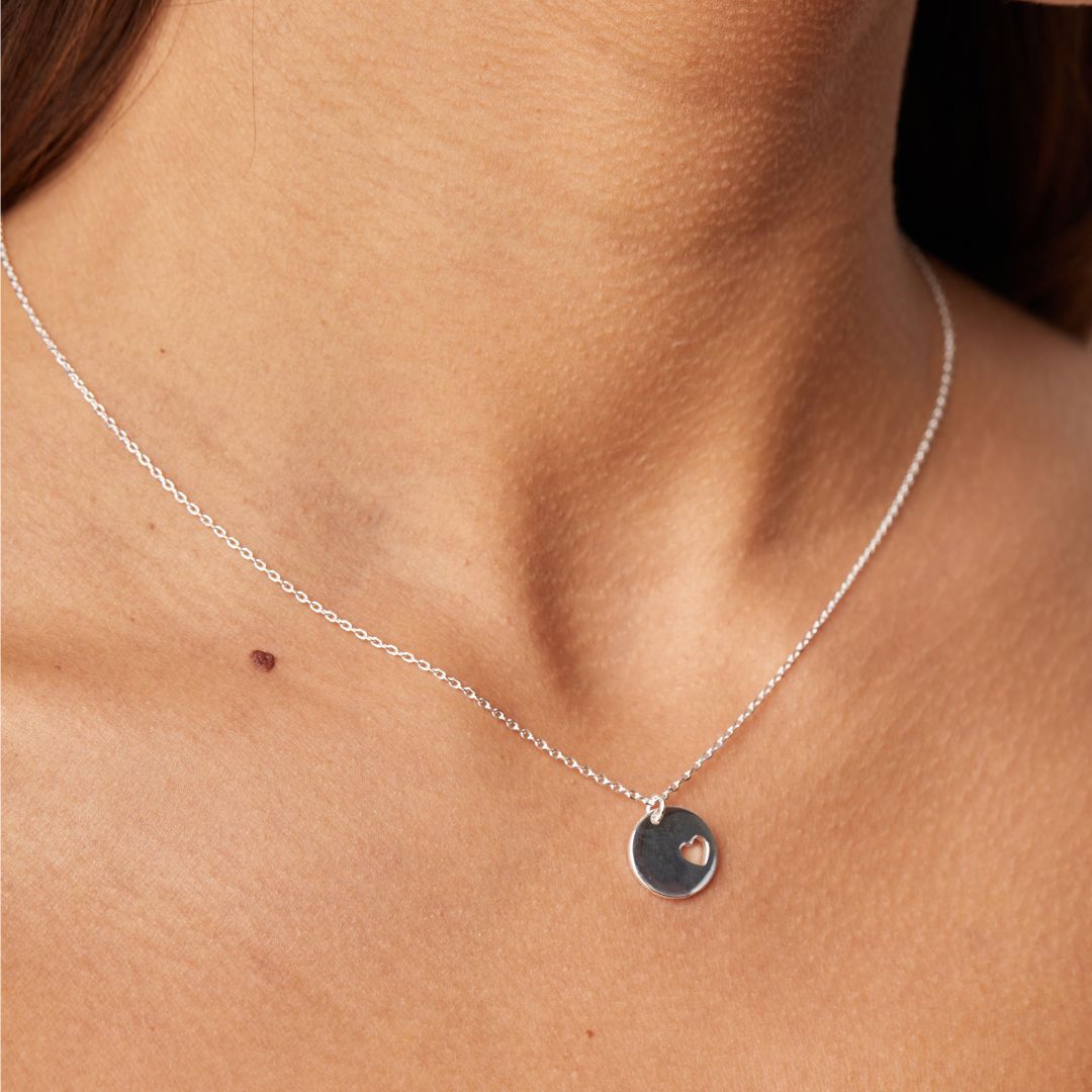 Este hermoso collar con colgante de medalla con un centro de corazón mide 12 mm y está hecho en plata 925.