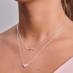 Este collar combina tres piedras en diferentes tamaños, dispuestas como un pequeño racimo de luz.