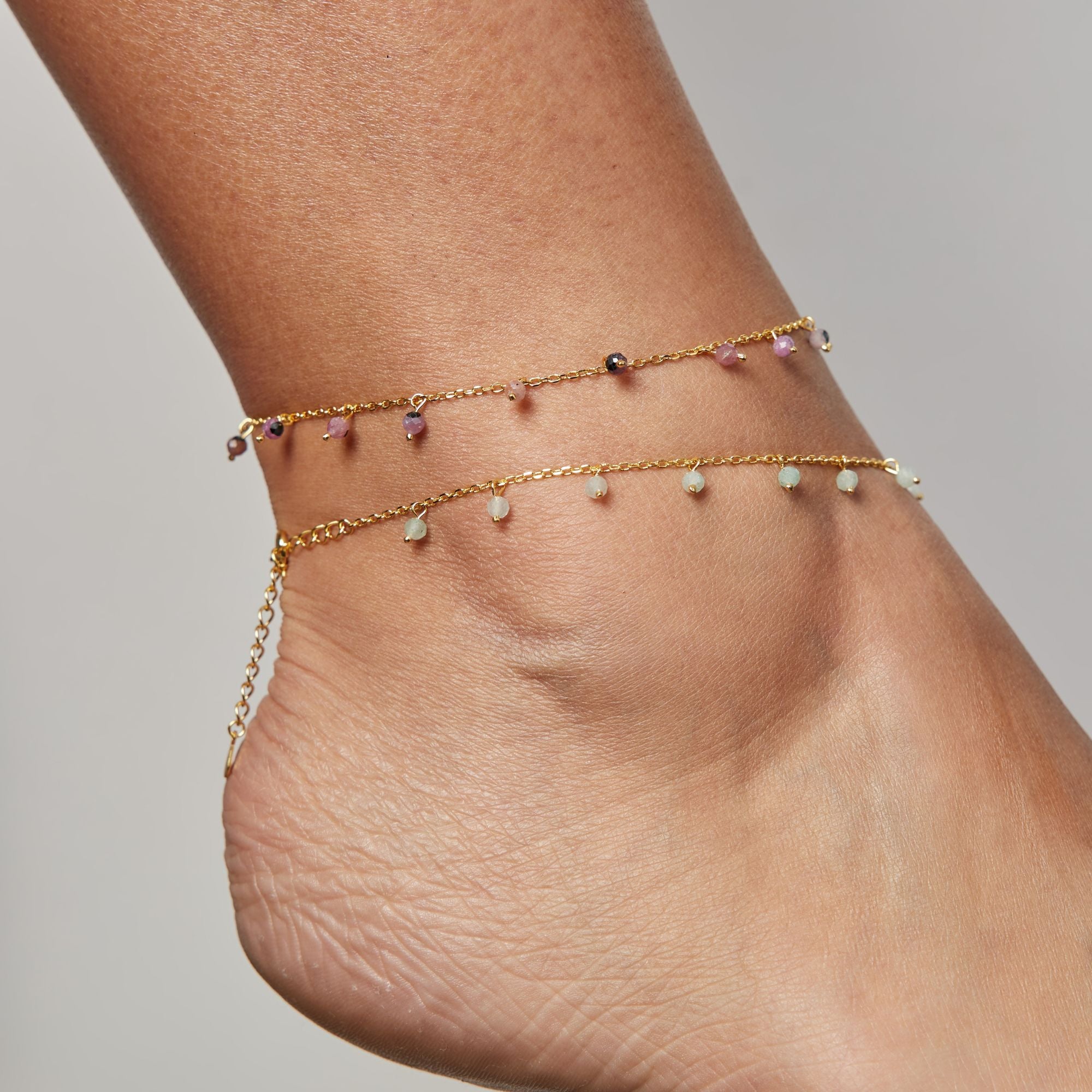 Nuestra Tobillera Ina con piedras de ágata, es un complemento perfecto para los días soleados y los looks auténticos.
