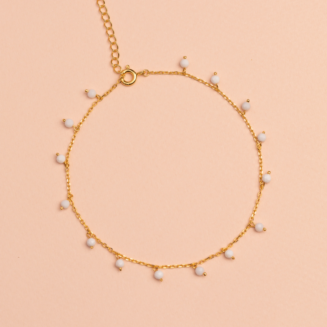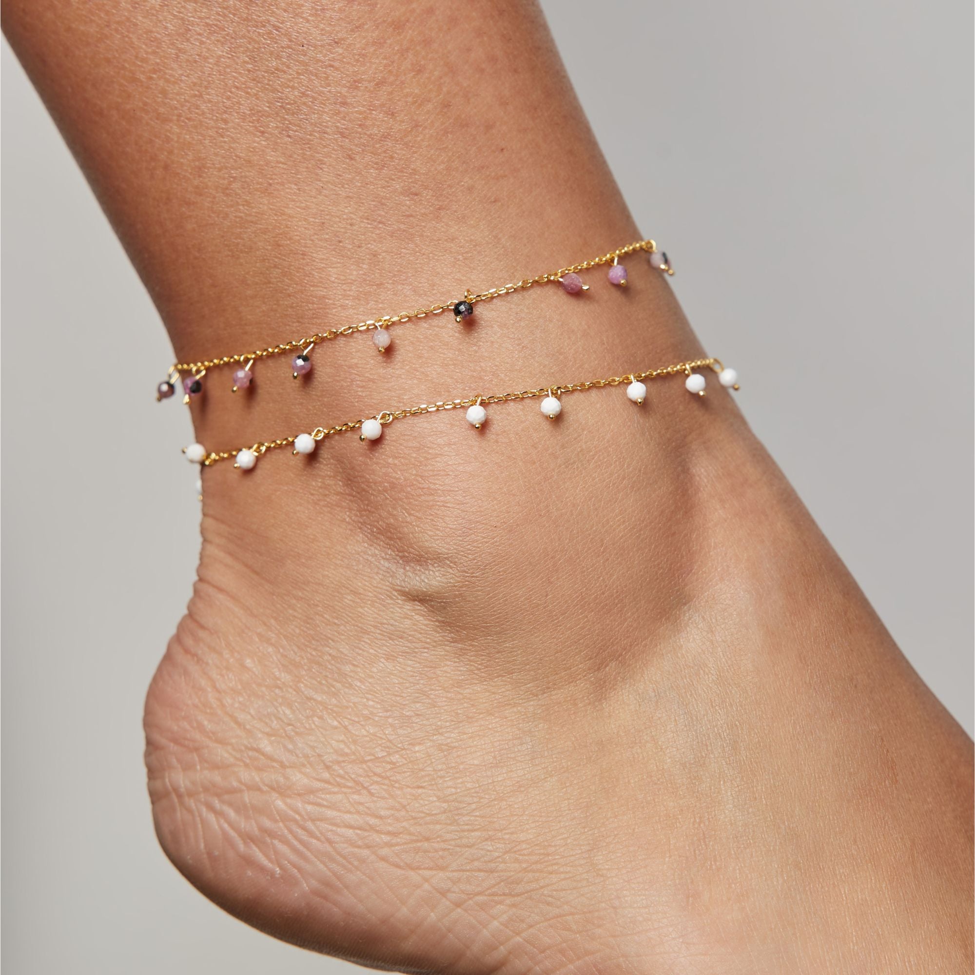 Nuestra Tobillera Ina con piedras de ágata, es un complemento perfecto para los días soleados y los looks auténticos.