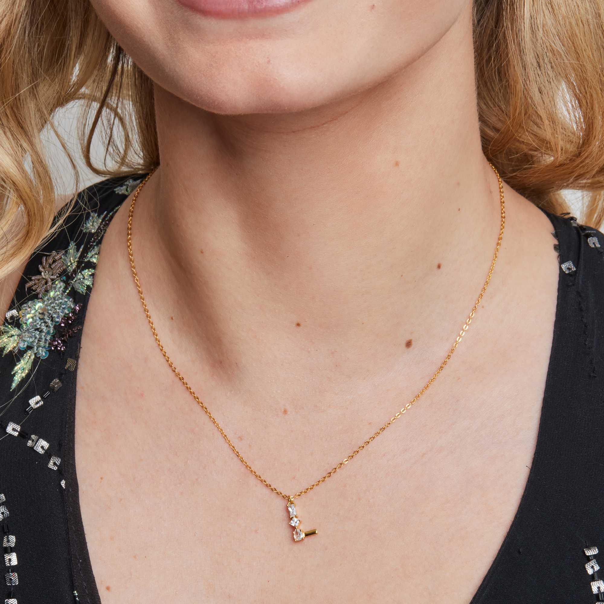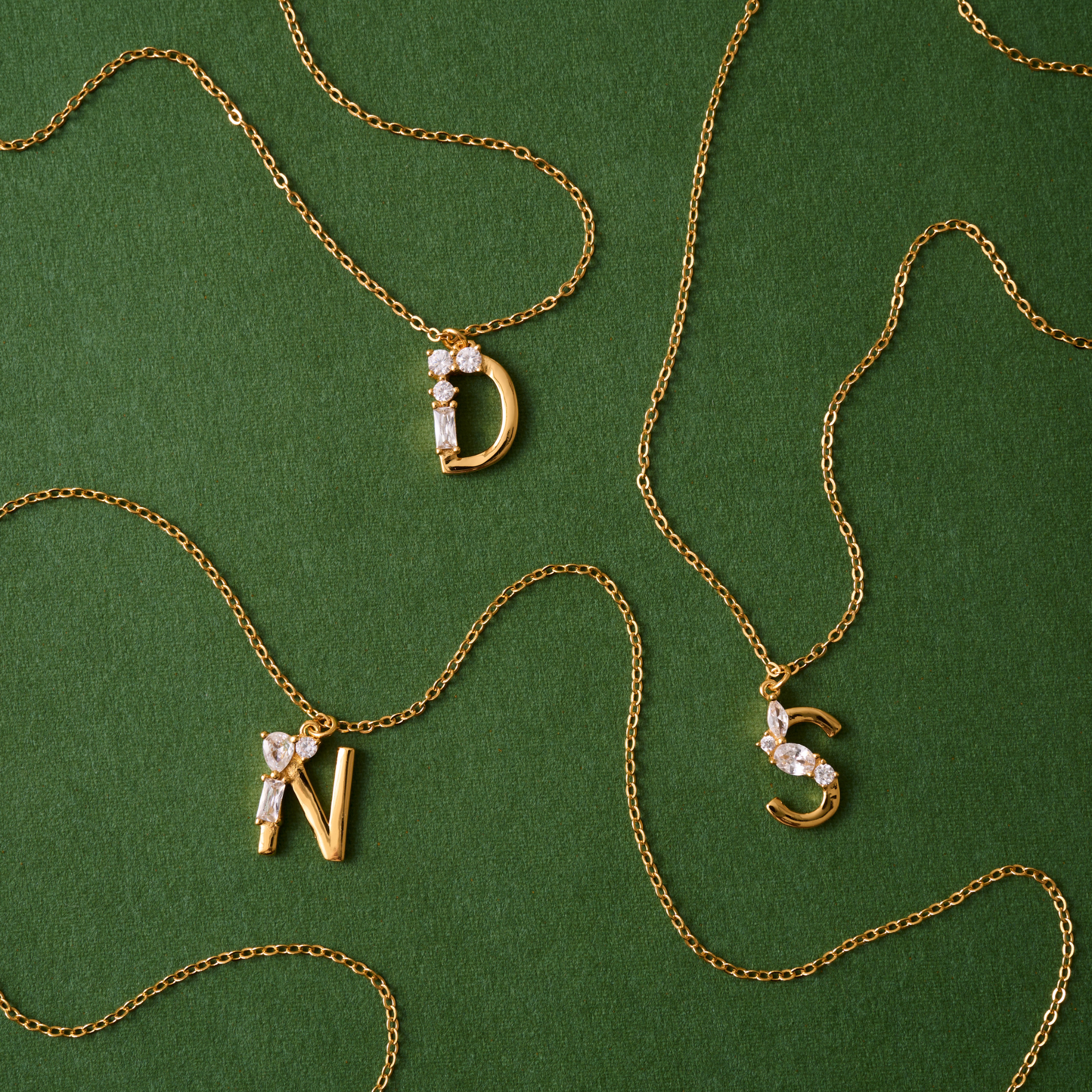 Sea cual sea su significado, la letra se destaca con circones brillantes que añaden un toque de glamour al collar.