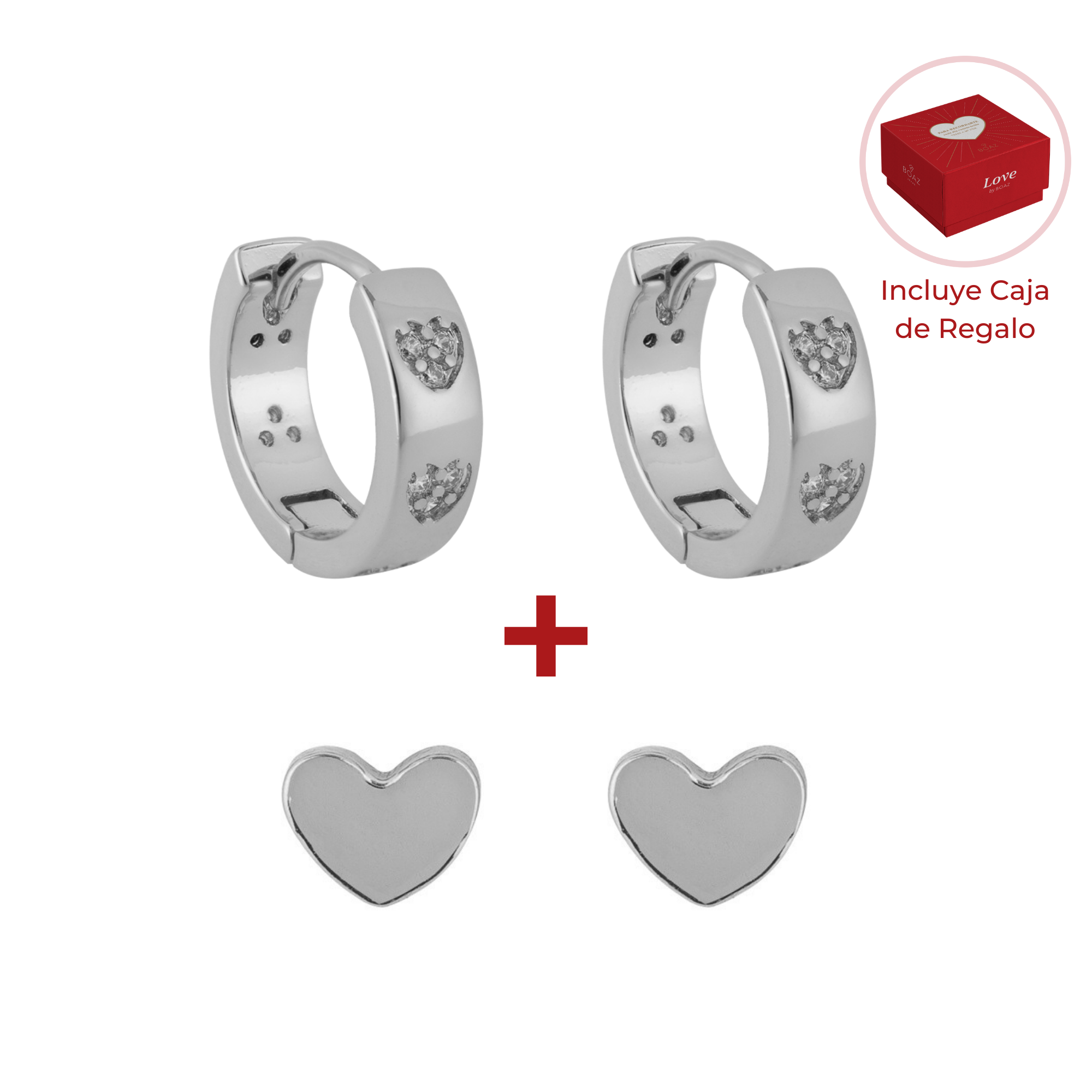 ✨ Aros Love: Pequeños corazones bañados en oro blanco que complementan el regalo perfecto.