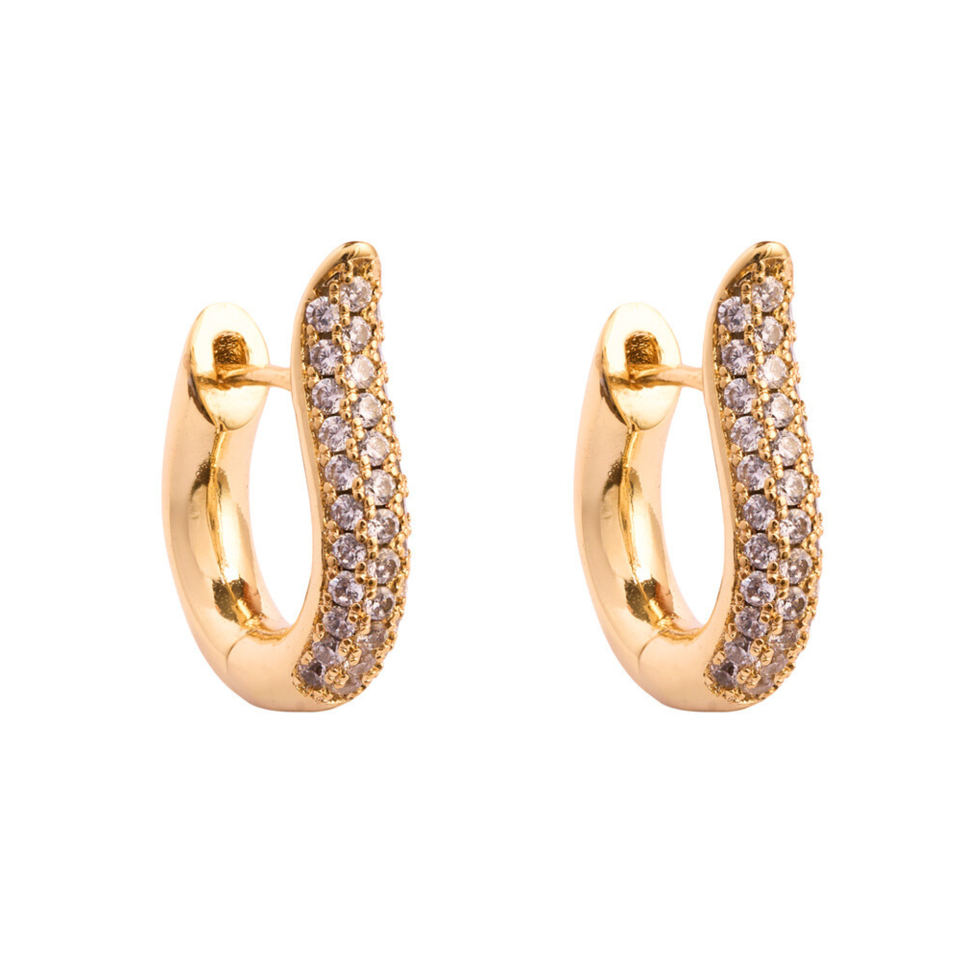 Con un resistente baño de oro de 18 quilates, libre de níquel y con brillantes circones, son las argollas perfectas para un look más natural.