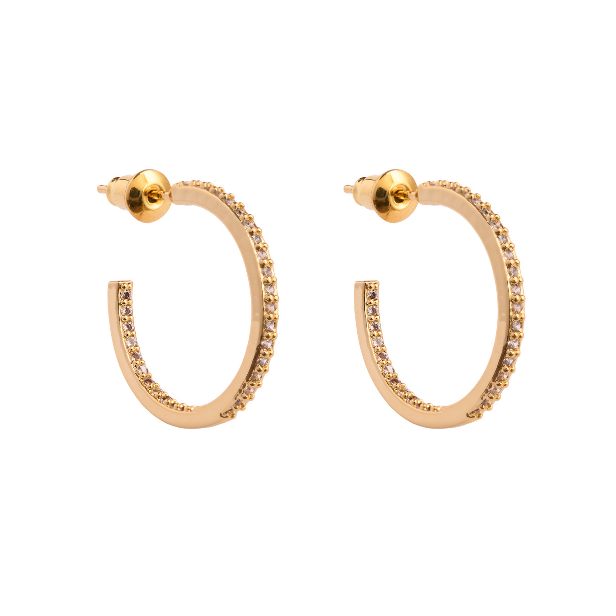 Con un resistente baño de oro de 18 quilates, libre de níquel y con brillantes circones, son las argollas perfectas para un look más natural.