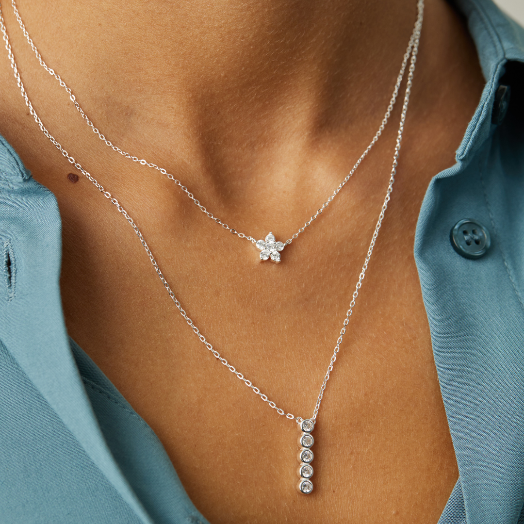 Hicimos este collar en plata 925 y circones blancos brillantes, perfecto para transmitir tu estilo alegre