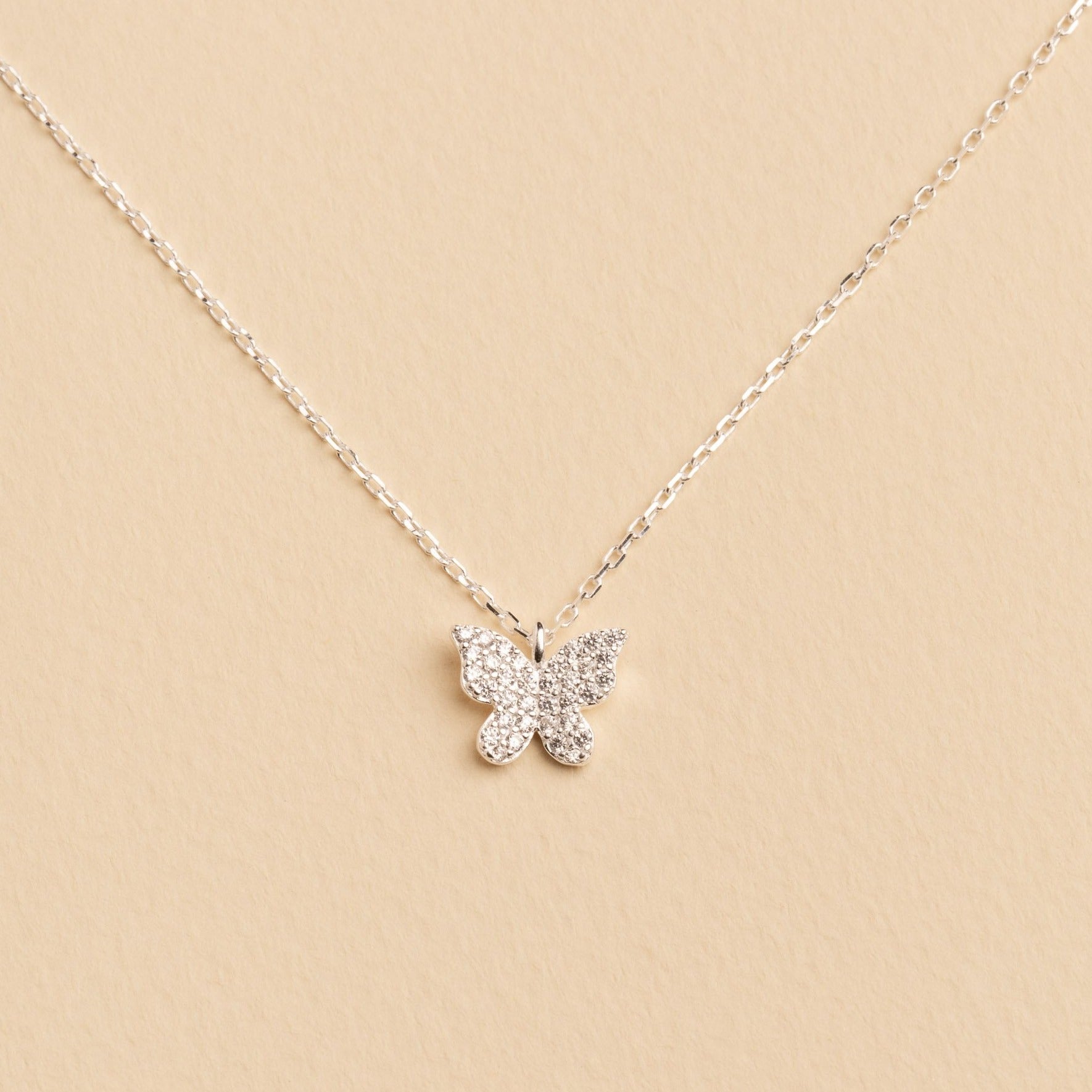 Fabricado en plata 925 y brillantes circones que dan forma a la mariposa de su colgante. Este es un collar que resalta en todos tus atuendos.